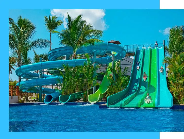 At Dreams Flora Resort & Spa, enjoy oceanfront suites with private balconies, late-night room service, gourmet restaurants, endless top-shelf drinks, waterpark thrills, kids & teens clubs, and a tropical spa by Pevonia®—all designed for family fun and romantic indulgence.