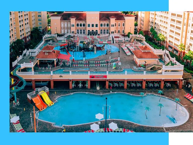 Enjoy direct access to our water park, unforgettable experiences in entertainment areas designed for all ages, and relaxation in spacious villas equipped with every amenity. At Westgate Town Center Resort, you don't need to leave to enjoy fun, relaxation, and unique moments with your family: swimming pools, restaurants, activities, and spaces designed to make every day of your stay special.